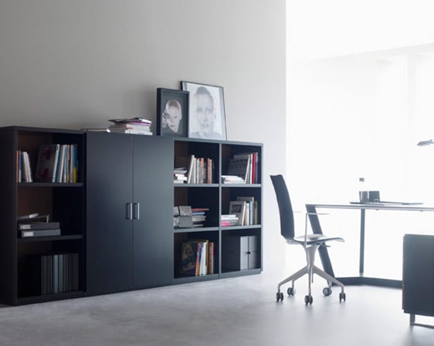Jakin est un système d’armoires qui convient parfaitement au bureau grâce à la combinaison des différents éléments.