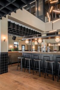 Dankzij het raster ontwerp zorgt het plafond voor een dieptewerking die de ruimte een rijke uitstraling geeft zonder overweldigend te zijn. De samenwerking tussen Charles & More en Martijn Veldman en heeft geleid tot een uniek ontwerp dat perfect aansluit bij de behoeften van Technoforum.