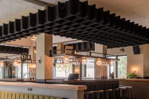 Voor Technoforum hebben we in samenwerking met Charles & More een op maat gemaakt akoestisch rasterplafond mogen maken, ontworpen door Martijn Veldman. Het plafond is vervaardigd uit duurzaam PET materiaal, dat zorgt voor optimale akoestiek. Het rasterpatroon biedt niet alleen akoestische voordelen maar heeft ook een esthetisch aantrekkelijk design.